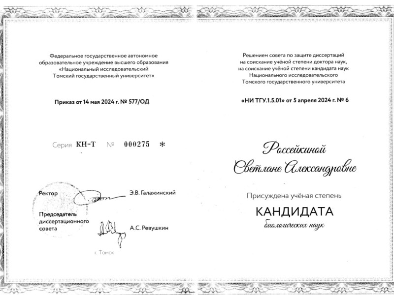 В канун Медового Спаса, нашему директору Музея меда и Томского пчеловодства Россейкиной Светлане Александровне вручили диплом о присуждении ученой степени кандидата биологических наук. От всей души поздравляем Светлану Александровну.