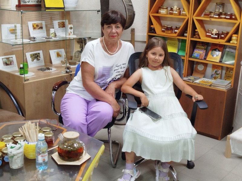 С первых же шагов по нашему музею было видно, что Маша – особенная гостья. Её глаза горели неподдельным интересом, пока она погружалась в таинственный и увлекательный мир пчёл. Она задавала множество вопросов, и стало ясно, что любовь к пчеловодству и натуральному мёду – это семейная традиция, которую Маша с радостью разделяет!